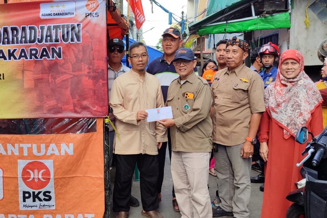 SALURANSATU.COM – Jakarta – Ketua DPD PKS Jakarta Barat Narmansyah bersama Ketua Bidang Pendidikan Kesehatan dan Sosial Reni Arita mengunjungi lokasi kebakaran di Kelurahan Tangki, Kecamatan Tamansari, Jakarta Barat, Rabu lalu (1/10/2025)
