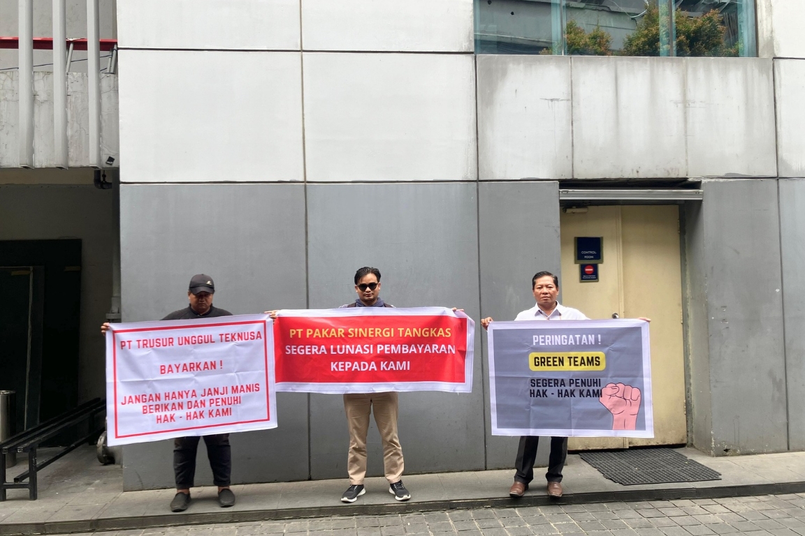 Aksi tersebut dilakukan sebagai bentuk tuntutan atas pembayaran pekerjaan yang disebut telah lama tertunda dari PT Trusur Unggul Teknusa beserta anak perusahaannya, PT Pakar Sinergi Tangkas, yang bergerak di bidang layanan pengukuran kualitas udara dan air bersih di bawah naungan Green Teams Group.