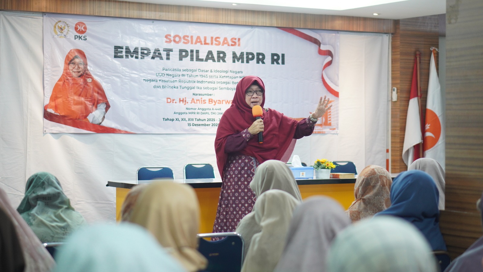 SALURANSATU.COM – Jakarta, 15 Desember 2025 – Anggota MPR RI Anis Byarwati menggelar kegiatan Sosialisasi Empat Pilar MPR RI yang meliputi Pancasila, Undang-Undang Dasar Negara Republik Indonesia Tahun 1945, Negara Kesatuan Republik Indonesia (NKRI), serta Bhinneka Tunggal Ika. Kegiatan ini bertujuan meningkatkan kesadaran dan partisipasi masyarakat dalam memahami serta mengamalkan nilai-nilai kebangsaan dalam kehidupan sehari-hari.